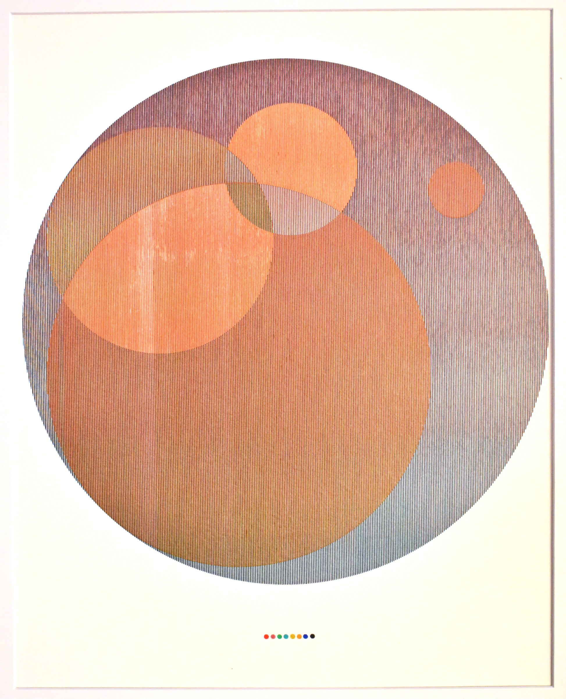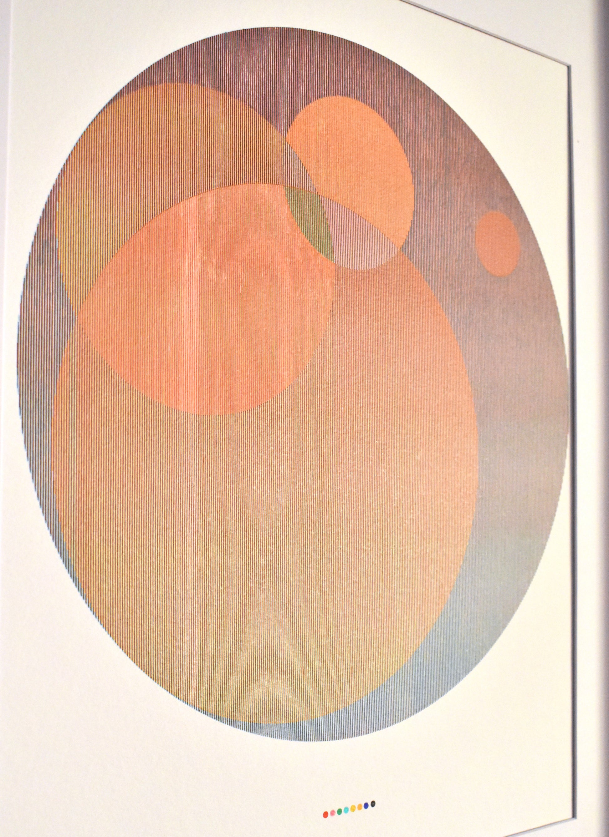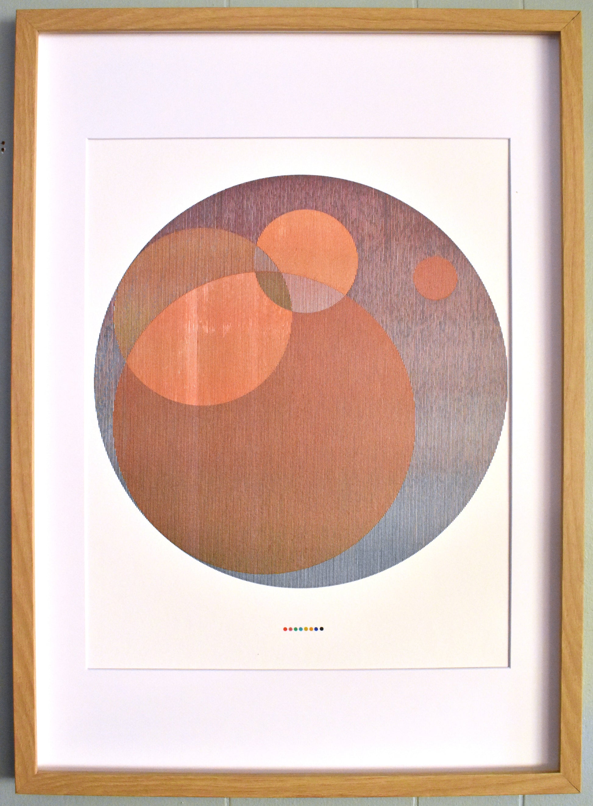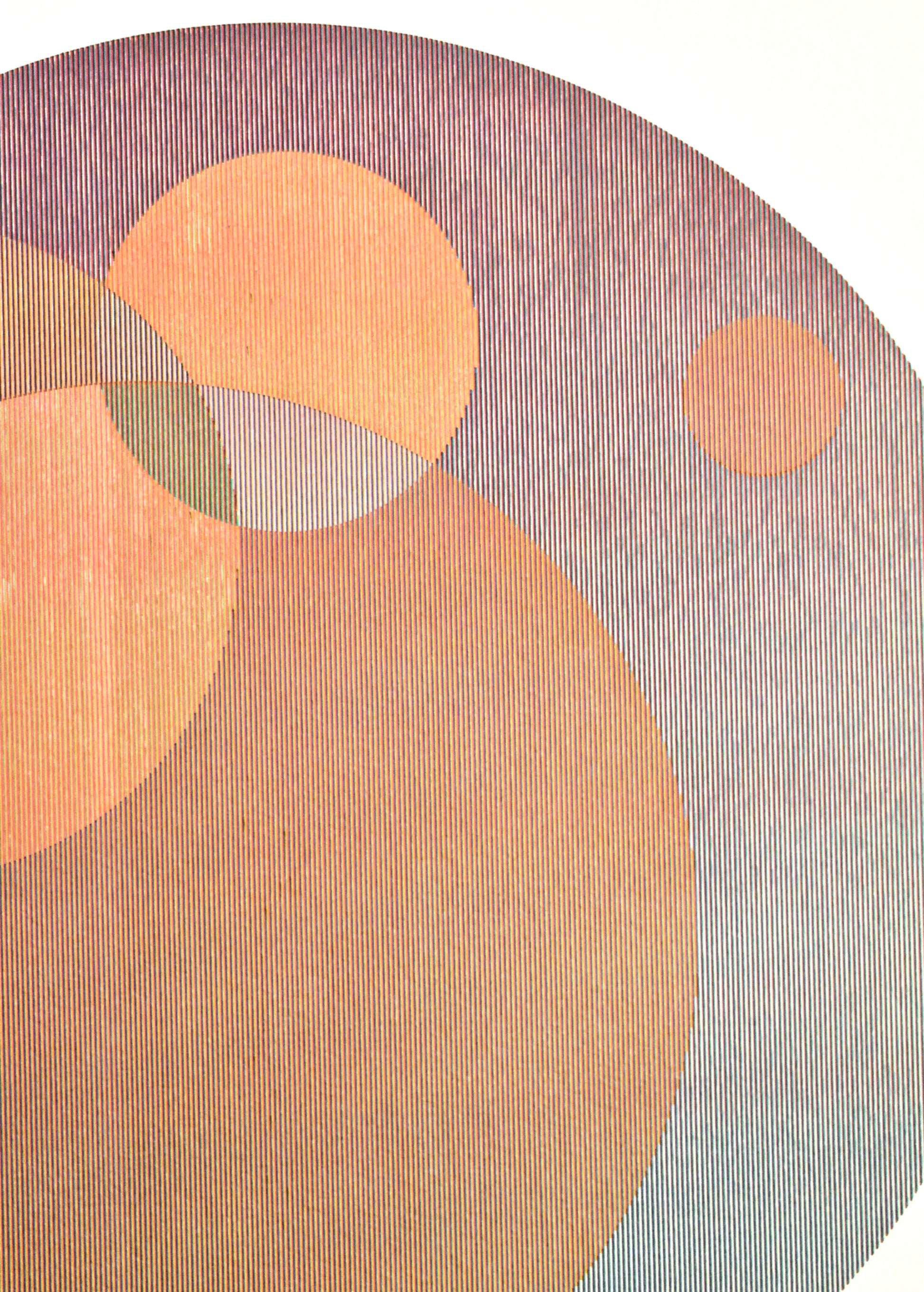 With some prints I list in my shop I actually don't mind if they sit a while so I have a little time to live with them. This one I left framed and hung and it has a real calming effect with the nested circles providing a soft composition along with the warmer tones. The mixing of lines in this one also has a delicate textile feel to it. There's a portion where the ink fades out but this just adds to that textile quality, like a spot on the rug worn down by a favorite piece of furniture.