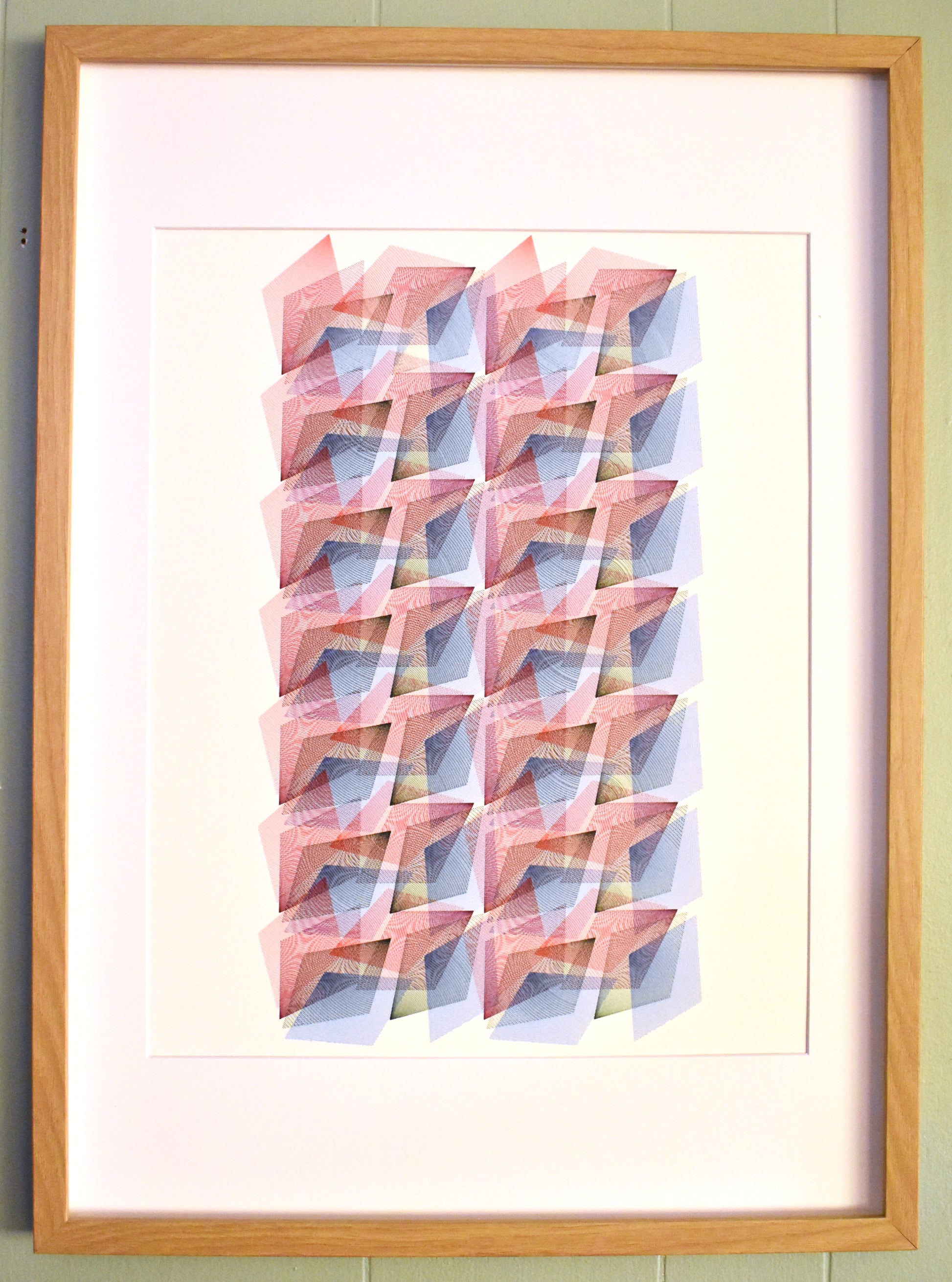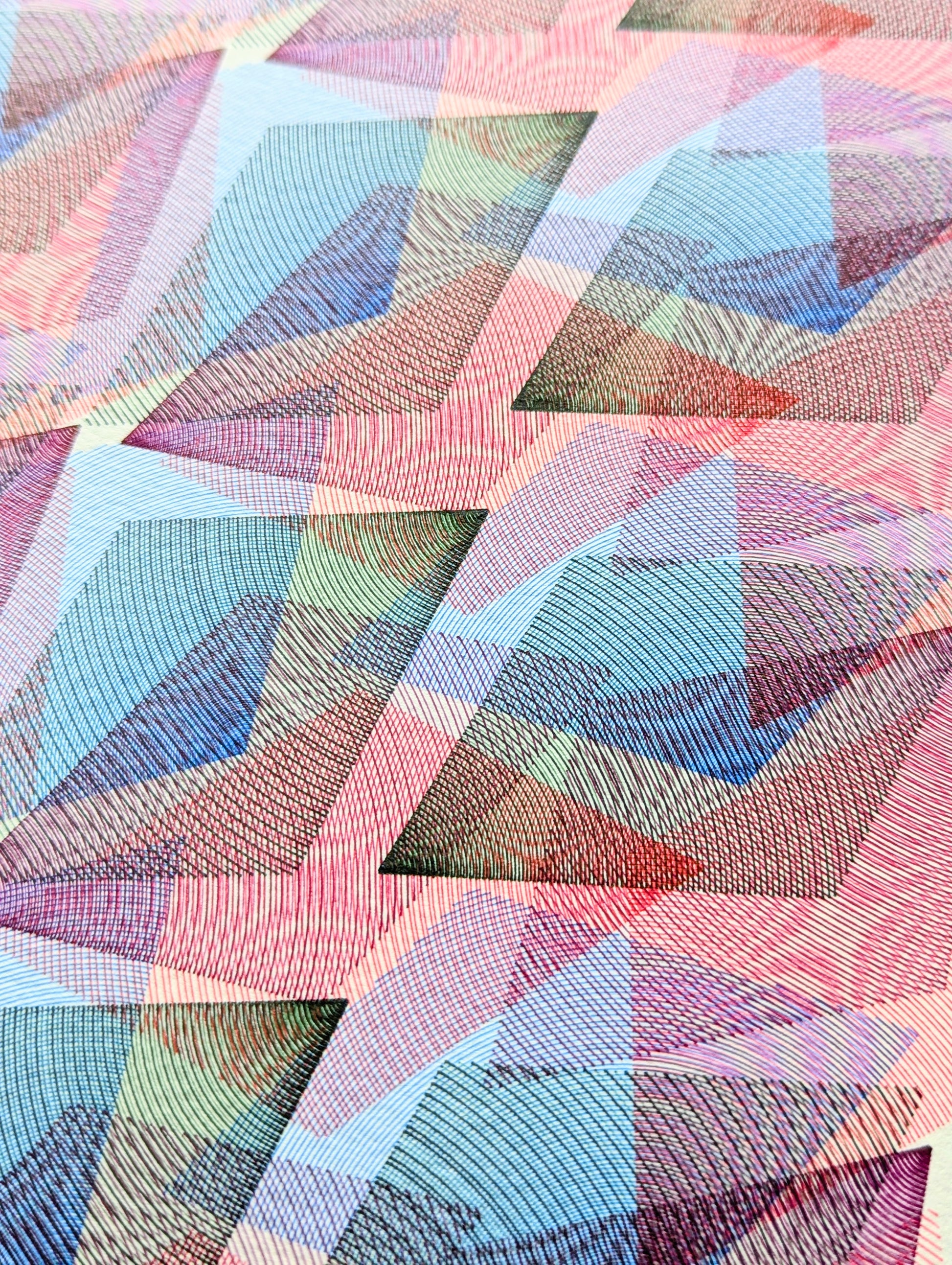 This may be the oldest file I have that I still keep plotting in one form or another. It's one of the few plots where I like to use a finer tip pen as it really lends to the transparency that makes this piece work, this one was run with some .38mm pens. I've started calling this piece 'Chimes' because it's one of those pieces you can almost hear when you look at it.